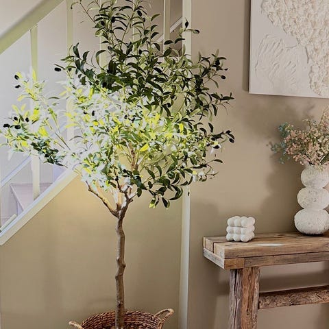Selger ett superfint stort falskt eukalyptus tre. 240 høyt (men kan bøye litt på de øverste bladene så blir det litt lavere) Har laget det selv. Støpt betong i potte, så står stødig. Stammen er ekte, så det ser mye mer ekte ut enn mye annet på markedet. Kjempefint om man f.eks. setter det i en stor keramikk potte med lekakuler. Falske trær/planter på den høyden/størrelsen ligger gjerne på 10.000kr ++.