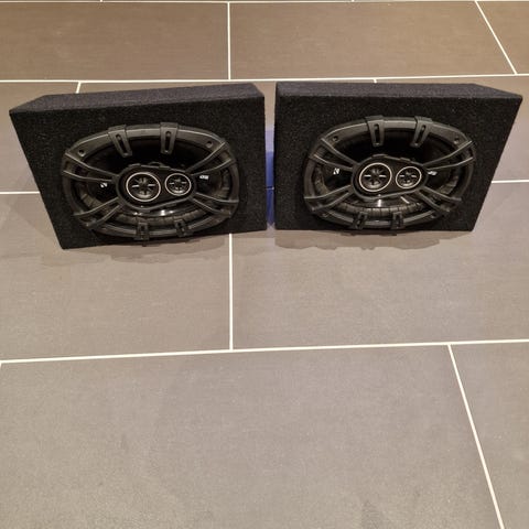 Pioneer bilsubwoofere i svart utførelse. Runde elementer med sølvfarget senter og svart kant. Passer til montering i bilens lydanlegg for ekstra bass.