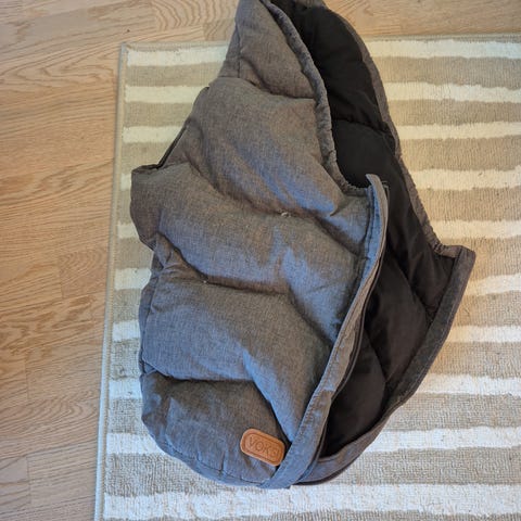 Passer til de aller minste. Holder dem varme og gode i bilen. Det er åpninger bak hvor sikkerhetsbeltet kan trekkes inn.