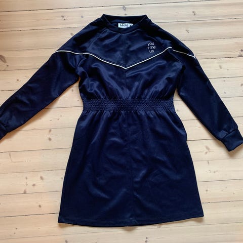 Molo kjole for jente i størrelse 146. Kjolen er laget i bomull og har et flerfarget sommerfuglmotiv over hele plagget. Modellen har lange ermer og rund hals med ribbekant. Passer til hverdagsbruk eller til anledninger der man ønsker et komfortabelt og mønstret plagg.