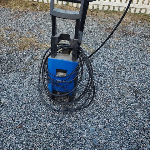 Høytrykksprøyte brukt privat forvask av bil og annet noen dager hver år. Lagret innendørs. 3000 eller høystbyende.
