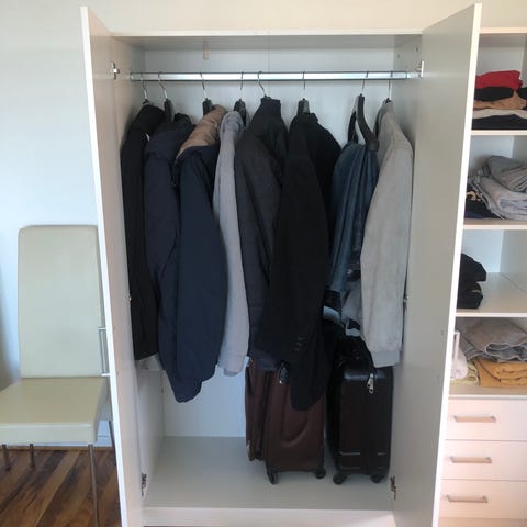 Skapsinnredning: 4 hyller og 1 stang. B119 x H193 x D51 cm