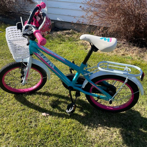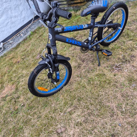 Bluerace barnesykkel 16" i svart og blå farge. Passer barn typisk i alderen rundt 4–6 år, avhengig av høyde og ferdighetsnivå.