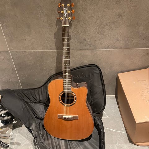 Kjøpte gitaren i Moss for tre år siden. Har ikke vært utr av huset, og lite pillt på. Halsen er meget slim og tynn, og ikke en typisk bred nylongstrens bredde.