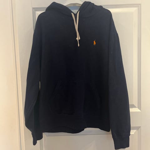 Ralph Lauren Polo hettegenser for herre i størrelse M. Genseren er blå og laget av bomull.