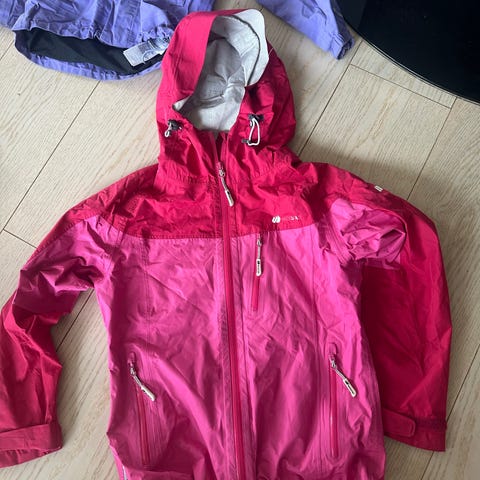 Polarn O. Pyret jakke til jente i størrelse 140. Jakken er i lilla tone og har glidelås foran. Passer til hverdagsbruk og ytterlag for barn i alderen ca. 9–10 år, avhengig av høyde og passform. Klærne på bildene viser både en fleecejakke og en skalljakke i samme størrelse, begge fra Polarn O. Pyret.