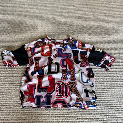 Stilig Molo sett med genser og bukse til jente. Står str 152, men vil si den passer til str 146. Settet er i myk bomull med flerfarget tigermønster. Langermet genser og lang bukse med elastisk linning.