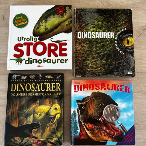 En av bøkene er bildeboken «Store dinosaurer og noen små» med store illustrasjoner og utbrettssider. De andre bøkene er faktabøker med tegninger, korte tekster og oversiktlige kapitler tilpasset barn.