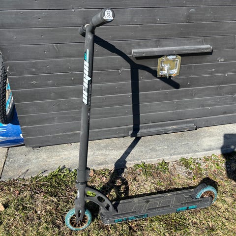 Lucky triksesparkesykkel i turkis og svart farge. Modellen har solid styre med T-form, håndtak med grep og forsterket front. Deck har grafisk design og er tilpasset triks og kjøring i skatepark eller på asfalt. Hjulene er små og harde, egnet for triksing og manøvrering. Passer for barn eller ungdom som ønsker en enkel triksesparkesykkel til bruk ute på jevnt underlag.