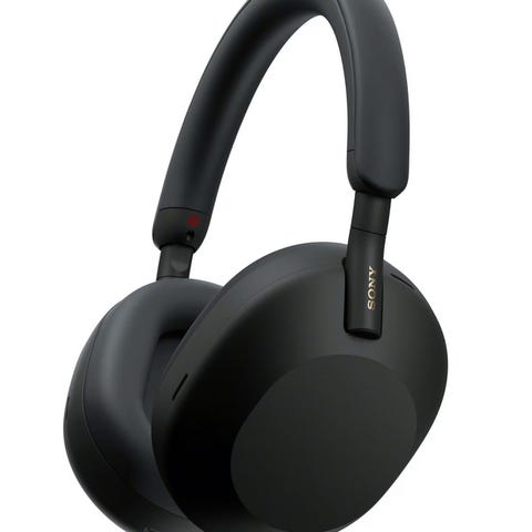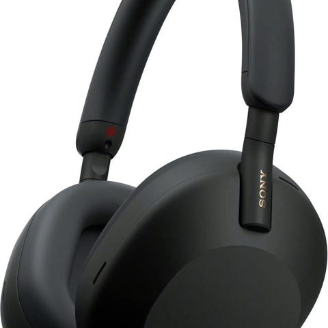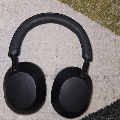 Sony WH-1000XM5 trådløse hodetelefoner. Lukkede øreklokker med polstret hodebøyle og myke øreputer for rundt-øret-passform. Leveres med komplett med hardt etui og kabel med 3,5 mm jack for kablet bruk, samt en kort USB-A til USB-C ladekabel.