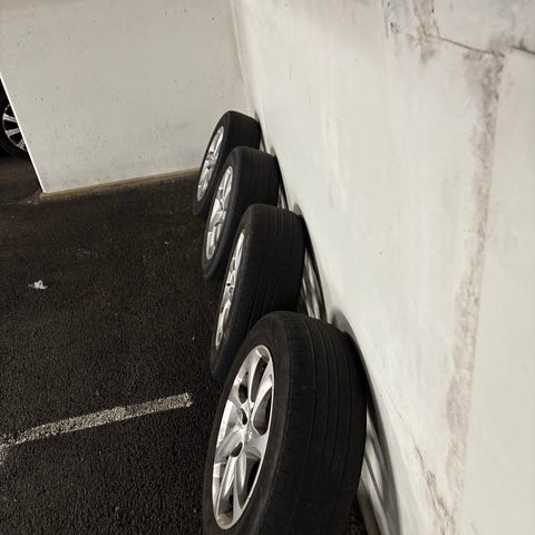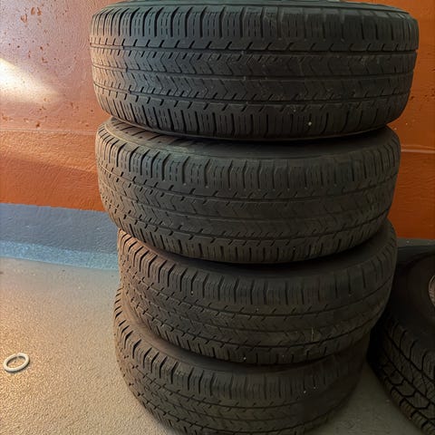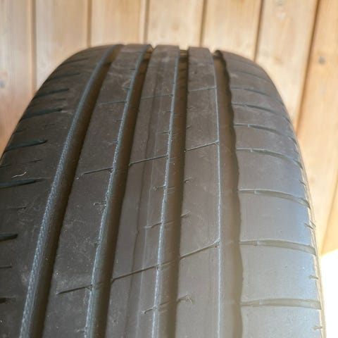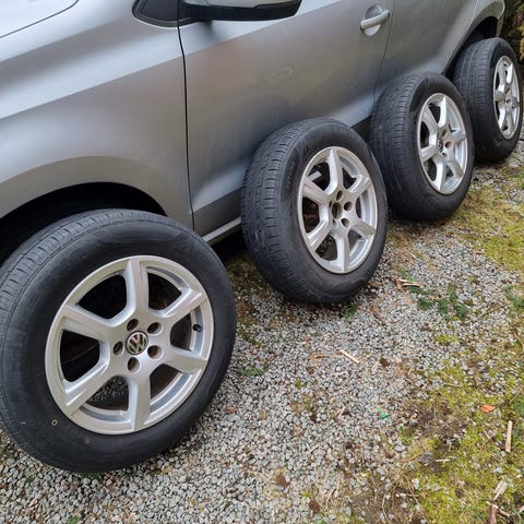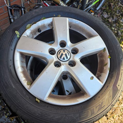 Liten kantkjøringsmerke på ene felgen, ellers hele og pene. Grei mønsterdybde, ca 4-5 mm. Nokian hakka. Se bilder for fullstendige dimensjoner