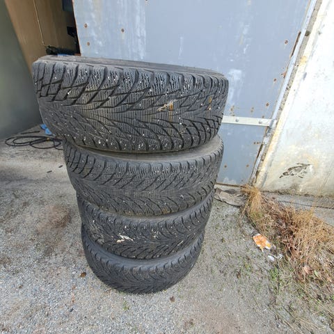 4 stk piggdekk, med piggene fjernet, så disse kan kjøres med utover våren. Ca 7-8 mm mønsterdybde. Passer blant annet div varebil og bobil. Pris pr stk.