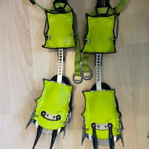 Pent brukte. Gode stegjern til is og miksklatring. Har brukt de med monopigg, så det er med 2 ubrukte pigger om man vil bruke de med dobbel pigg. Passer de fleste typer sko. Bilder kommer om en ukes tid når jeg er tilbake fra ferie