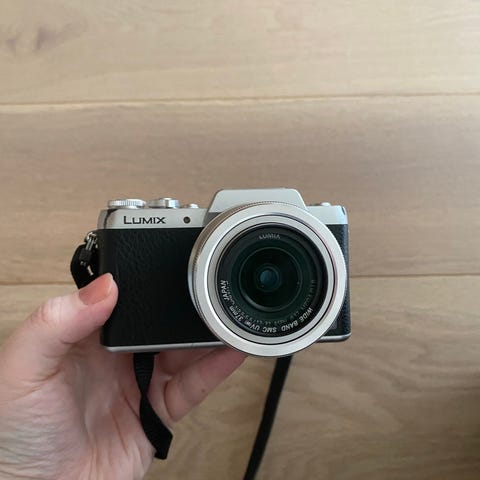 Panasonic Lumix DMC-LX100 kompaktkamera i sølvfarge. Kameraet har innebygd Leica-zoomobjektiv og manuelle kontrollhjul for blant annet blender og eksponering. På baksiden er det stor skjerm og et oversiktlig knappesett for innstillinger og navigasjon i menyene. Kameraet har også innebygd blits, tilkobling for stativ og batteriluke på undersiden. Passer til generell fotografering, reiser og hverdagsbruk der man ønsker et kompakt kamera med manuelle innstillingsmuligheter. Følger med lader.