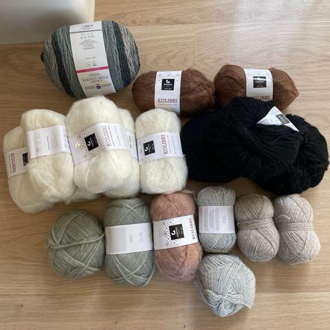Restegarn ca 800 g ulike farger og garnmerker.