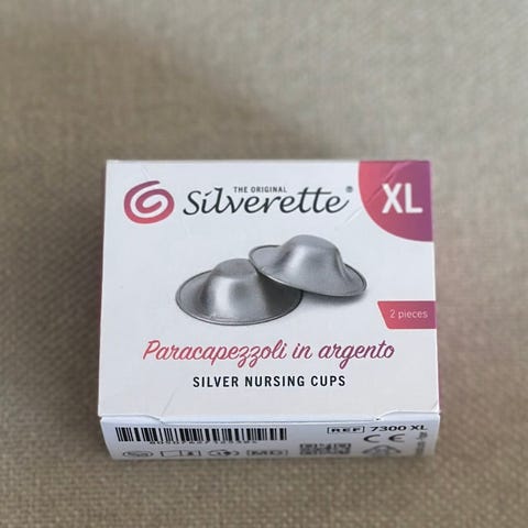 Silverette XL ammekopper er laget i sølv og brukes som beskyttelse av brystvorter ved amming. De plasseres inne i BH-en og kan bidra til å skjerme mot friksjon fra tekstiler og lekkasje av melk. Har du såre nipler eller kjøttsår pgr feil suge grep så heales disse på få dager, allerede dagen etter merkes forskjell . Disse er redningen . Kan selvfølgelig kokes .