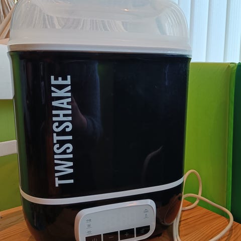 Sterilisator fra Baby Brezza med en HEPA-filter. Steriliserer og tørker alle typer tåteflasker, brystpumpedeler, smokker og tilbehør helt automatisk.