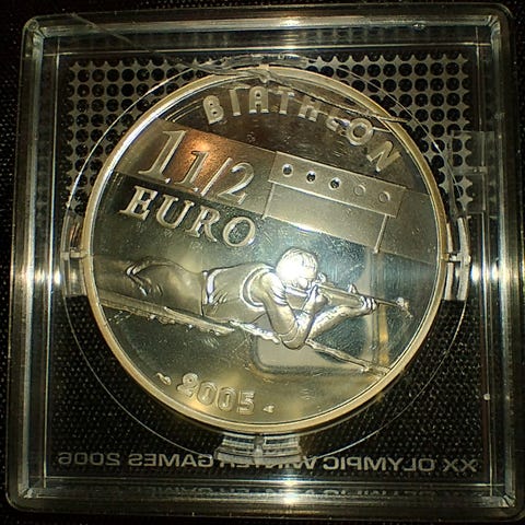2 stk. OL Medaljer Torino 2006 en 10 euro 5 euro sølv.