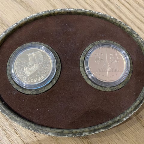 2 stk. OL Medaljer Torino 2006 sølv. En 10 euro og 5euro. Ligger i et etuiet 1896-1996 OL. Tror det er feil. Kan sende bare Medaljer.
