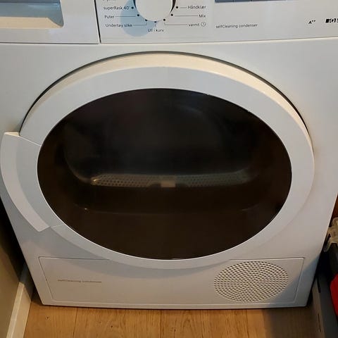 Drivreimen røyk. Jeg bestilte ny og byttet den, men i mellomtiden hadde kona kjøpt ny tørketrommel.