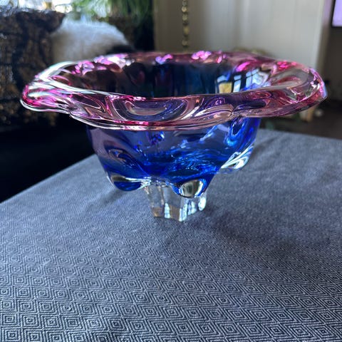 Josef Hospodka, Chribska, Chřibská, tsjekkisk kunstglass, Czech art glass, krystallvase, håndblåst glass, sommerso, rosa krystall, MCM, Mid-Century Modern, Böhmisk glass, Bohemian crystal, vintage vase, 1960s glass, samlergjenstander