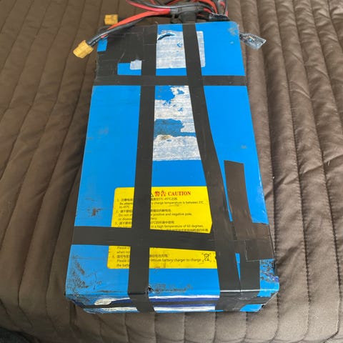 Eneste som er at jeg skulle bytte bms fordi 40A var lite (den er tatt av nå). Men vet ikke hvordan man bytter bms så selger den som den er. Har et nytt bms 100A som følger med vet ikke tilstanden på den fordi har ikke prøvd den. Ellers så funker batteriet med nytt bms. Det er sånn lite display på batteriet som viser hvor mye strøm den har og hvor mange volt. Må koble på bmsen for at den skal fungere