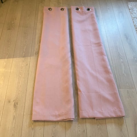Kid gardiner med maljer i lys rosa farge. Gardinene har store maljer øverst til oppheng på gardinstang. Tekstilet har lett strukturert overflate. Passer til bruk i stue, soverom eller barnerom der man ønsker gardiner med maljeoppheng i en dus rosa tone.