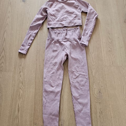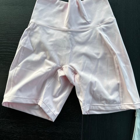 Treningstights shorts for dame i størrelse S. Shortsen er i en lilla farge og laget i et elastisk materiale som egner seg til fitness og annen trening. Modellen har høy midje med overlappende front og rynkedetaljer med snøring i sidene for justering av lengde og passform. Baksiden har rynkesøm midt bak for bedre passform. Passer til innendørs og utendørs treningsøkter som styrke, kondisjon og gruppetimer.