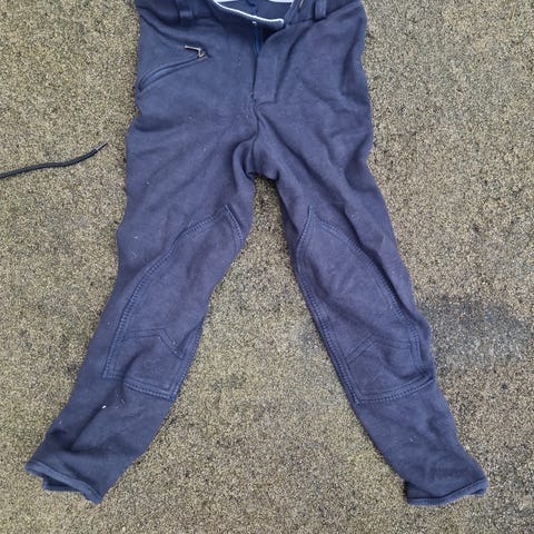 Horze ridebukser for barn i lilla og rosa farger. Buksene har hel- eller knegrip med silikon for bedre feste i salen, samt forsterket stoff på innsiden av knærne på enkelte modeller. Elastisk materiale gir god bevegelsesfrihet. Passer til ridning og stallbruk. Enkelte bukser viser noe slitasje på stoffet, se bilder for detaljer.