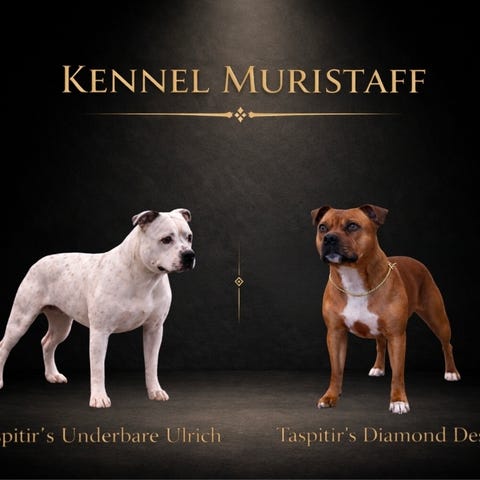 Vi i kennel Krystallini søker et nytt og kjærlighetsfullt hjem til vår nydelige Staffordshire bull terrier hannvalp på 6mnd.