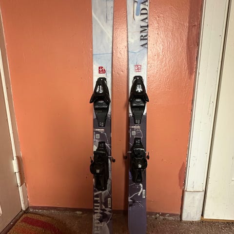 Armada Bantam alpinski 113 cm i blå fargetoner. Skiene har integrerte bindinger, som vist på bildene. Lengden på 113 cm .Skiene har twintip form med lett innsving, som gir god kontroll for utvikling av grunnleggende skiteknikk.