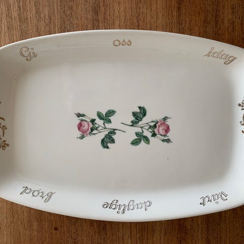 Figgjo kakefat / stettfat i porselen. Fatet er hvitt med blomstermønster i gule og oransje toner og grønne blader i midten. Dekoren heter Safran. Riflet kant rundt ytterkanten. Egnet som serveringsfat til kaker, desserter, flatbrød eller andre småretter på bordet. Fatet har en høyde på ca. 8 cm og har en diameter på ca. 24 cm. Veldig pen stand. Ingen skader, krakelering eller dekorslitasje.