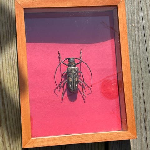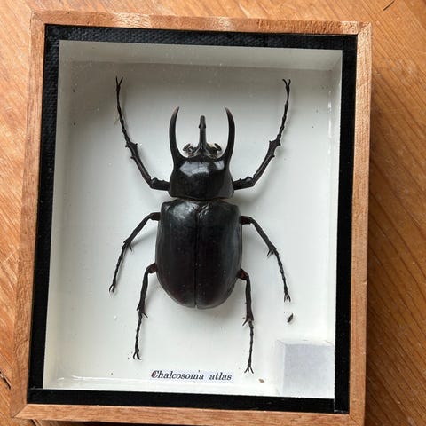 Femhornet neshornbille, montert i ramme