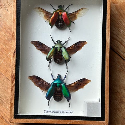 * Montering: Det krever stor teknisk ferdighet å montere en bille med vingene ute slik som på bildet, da disse er svært skjøre når de tørkes.
