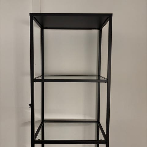 Pent brukt IKEA Vittsjö hylle med glasshyller selges billig grunnet flytting.