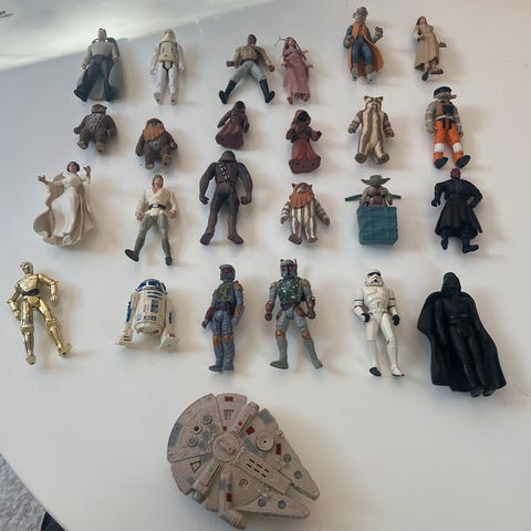 Vintage Star Wars figur samling 75 stk og noen våpen 1977-1985