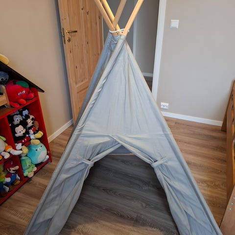 Selger et pent og lite brukt tipi telt i beige. Fra Jotex.
