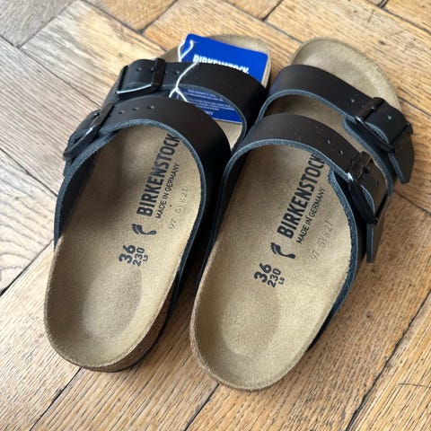Størrelse: 36 (jeg bruker normalt alt fra strl. 37-38 i sko, men Birkenstock Arizona er store i størrelsen og passer meg godt i 36).