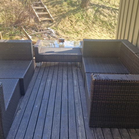 4 hagestoler i rotting. Stolene har avrundet rygg og armlener. Egnet til bruk på terrasse, balkong eller i hage. Materiale er vedlikeholdsvennlig kunstrotting.