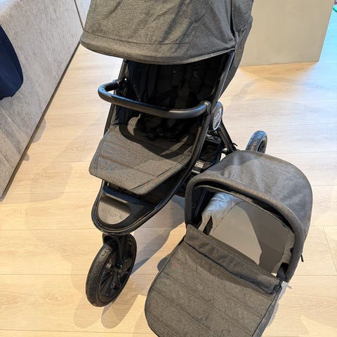 Pent brukt til ett barn. Perfekt sovevogn, fordi barnet kan ligge nesten helt flatt og har god plass til pose og bein. Netting for lufting og «vinduer» til å se barnet. Kjempeenkel å klappe sammen og ut. Noe solbleket, men bildene har skolder i stoffet fordi den er nyvasket og ikke helt tørr enda. «Brett» foran følger med. Nypris 8599,-