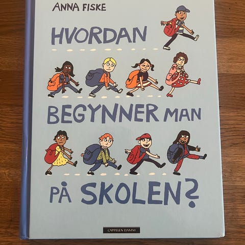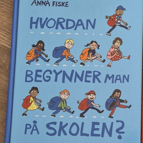 Anna Fiske «Hvordan begynner man på skolen?» barnebok. Illustrert bok for barn om det å starte på skolen. Egner seg for førskolebarn og barn i tidlig skolealder som skal eller har begynt på skolen.