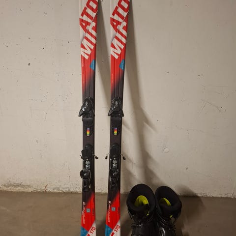 Atomic Carv C:9 alpinski i blå farge med integrerte bindinger. Skiene har markert carv-konstruksjon tilpasset preparerte bakker. Undersiden viser tradisjonell såle for alpinski, og toppsheet har tydelig Atomic-logo og modellbetegnelse C:9. Leveres med monterte alpinstøvle-bindinger som vist på bildene. Passer til bruk i alpinbakke for de som ønsker carv-ski med midtbredde og radius tilpasset svingkjøring på preparert underlag. Pris kan diskuteres med rask handel