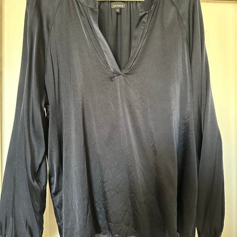 Ane Mone bluse for dame i størrelse 42. Blusen er svart og laget av 100 % polyester. Modellen har lange ermer med mansjett og knapp, samt en enkel utringning med liten fold i front. Passer til både hverdagsbruk og mer formelle anledninger, og kan kombineres med bukser eller skjørt.