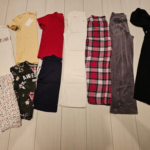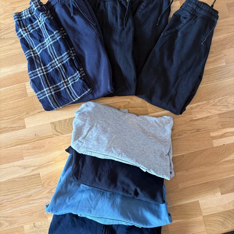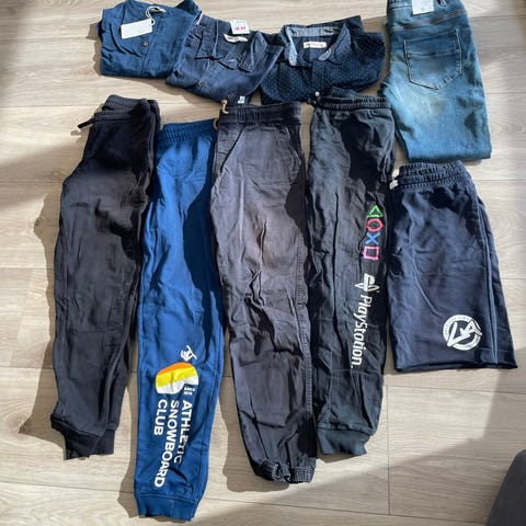 Klespakke med 5 ulike joggebukser noen er helt nytt og noen er pent brukt .strølsen er mellom 140 -152 . Selges til sammen 300 kroner .