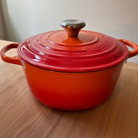 Selger en flott og solid gryte fra Le Creuset i klassisk rød/oransje farge.