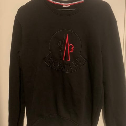 Moncler genser for herre i størrelse XL. Genseren er kun brukt 2 ganger og kjøpt ny i desember, kjøpt på Vidars i Tønsberg for 6200kr. Jeg finner ikke denne type genser på nett, så virker som denne modellen ikke blir solgt lengre