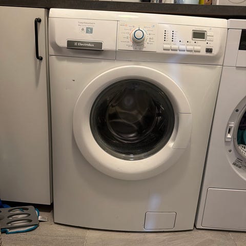 Electrolux frontmatet vaskemaskin i hvit utførelse. Maskinen har frontåpning med rund dør og kontrollpanel øverst med programvelger og knapper for innstillinger. Egnet for plassering i vaskerom, bad eller kjøkken der det er tilkobling for vann og avløp. Passer til vanlig husholdningsbruk for vask av klær og tekstiler som tåler maskinvask.