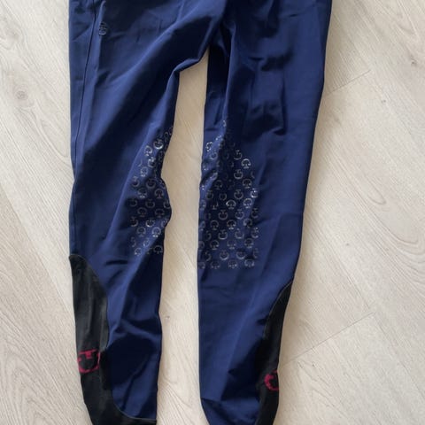 Z ridebukse for dame i blågrønn farge. Buksen har helforsterket sete og ben med silikonmønster for bedre grep i salen. Modellen har beltehemper, knapp og glidelåslukking foran, samt lommer med nettingdetalj. Stoffet er elastisk for bevegelsesfrihet ved ridning og stallarbeid. Størrelseslapp viser EU 40 / FR 42 / IT 44 / GB 14 / USA 28. Selges fordi den ikke passer meg så godt lengre.