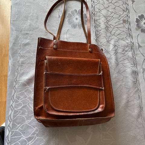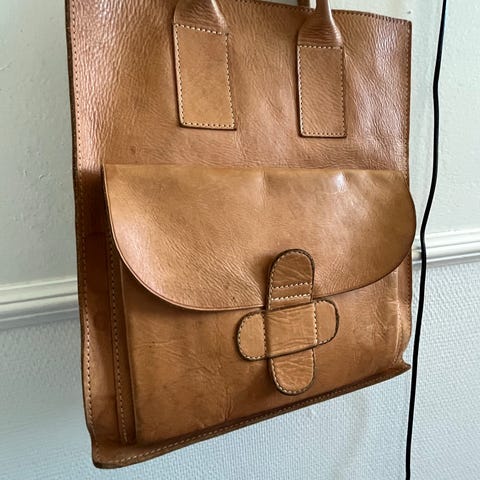Kul vintage skinnveske selges billig siden den er godt brukt og ikke spesielt pent tatt vare på.