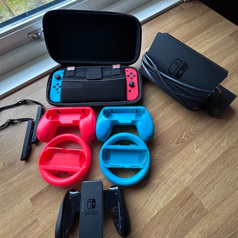 Nintendo Switch spillkonsoll med Joy-Con kontroller og dokkingstasjon